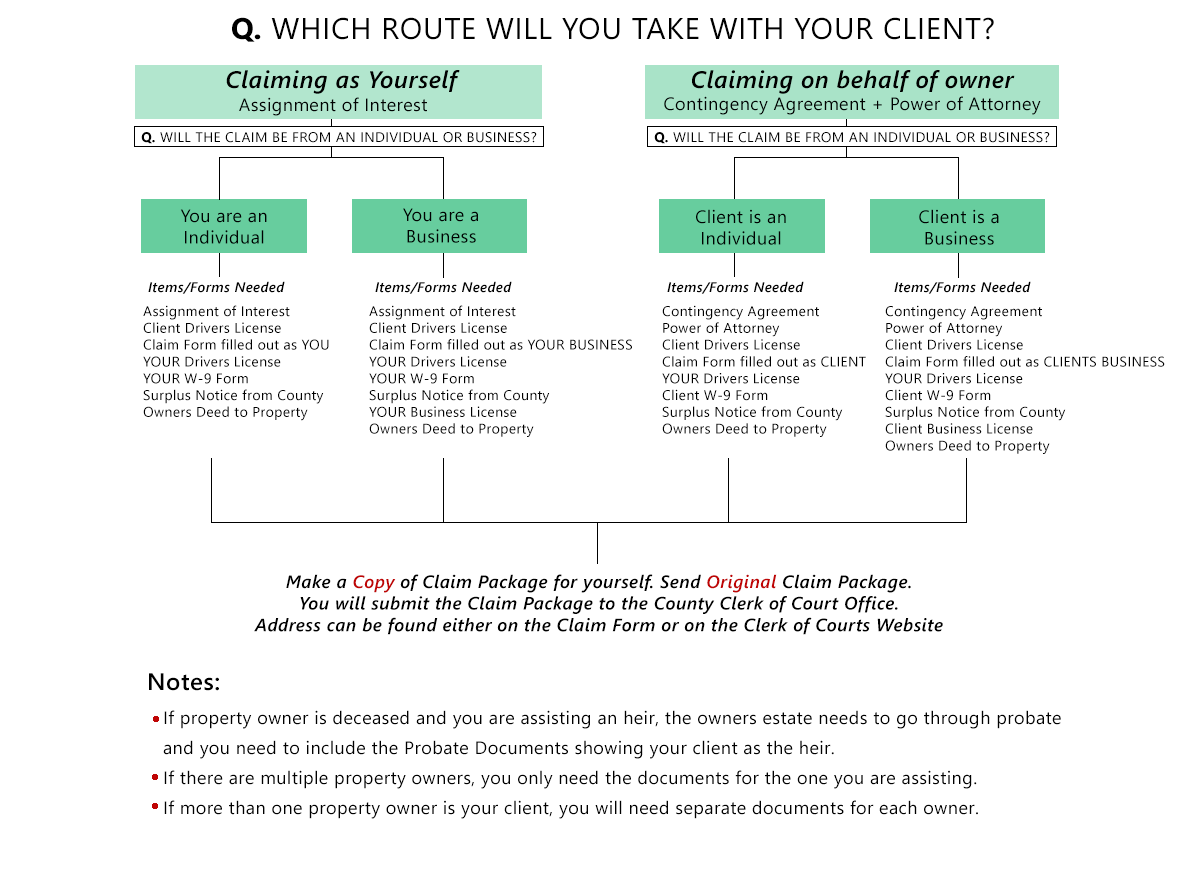 Besides the forms and agreements between you and your client, you will also need to submit certain documents, depending on the route you take.