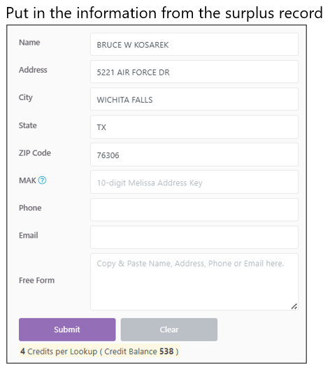 The one paid website we recommend is Melissa.com. You can purchase “credits” to use on searches.